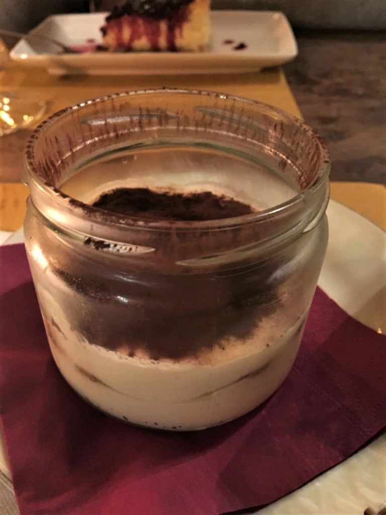 Last, but certainly not least, was our dessert. I chose the Tiramisu. This version was so delicate, and the espresso flavor was to die for. I also loved how it was served in a simple mason-jar type dish.